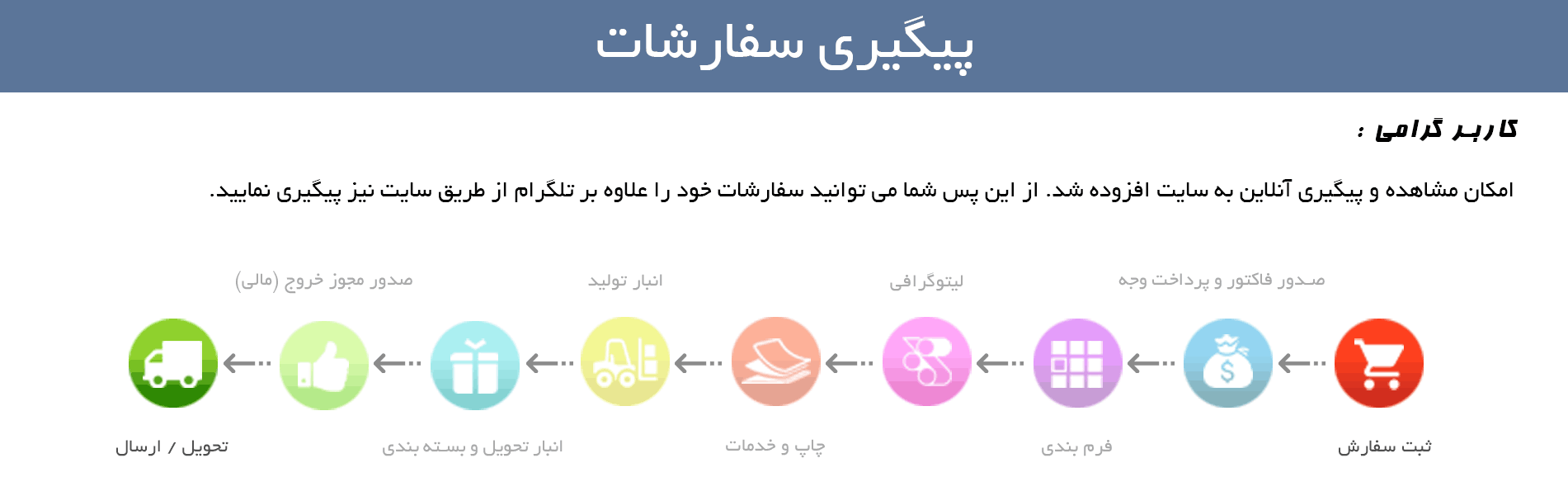 این سیستم ، به عنوان یک واسط به منظور دریافت سفارشات چاپ از مشتری و ارسال آنها به چاپخانه های مورد اعتماد ما جهت آماده سازی و تحویل آنها به مشتریان می باشد.